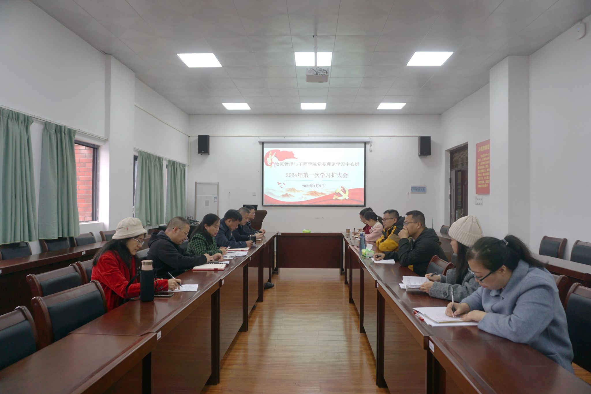 在武鸣校区地化楼C414会议室召开学院党委理论学习中心组2024年度第一次学习(扩大)会。学习会由学院党委书记陈兵同志主持,学院全体领导班子、党委委员、纪委委员、党支部书记等参加了学习。