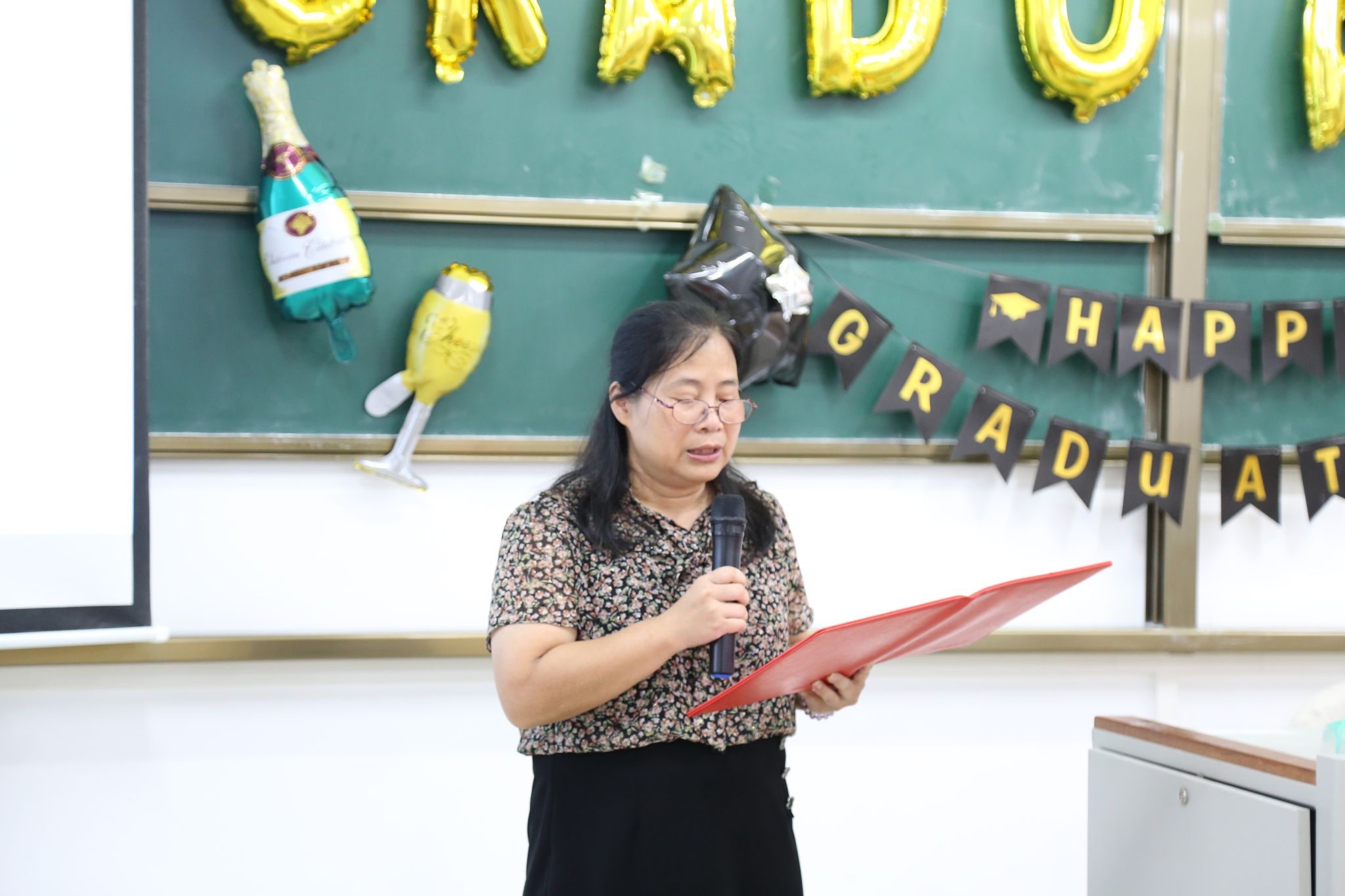 在武鸣校区2号实验楼A204教室举办了2024届研究生毕业生欢送会。学院党委书记陈兵、院长汪德荣、党委副书记黄宇、副院长刘新全、黎英,教师代表,全体在校研究生参加了此次欢送会。欢送会由研究生会陶徐杰雄、黄丹阳主持。