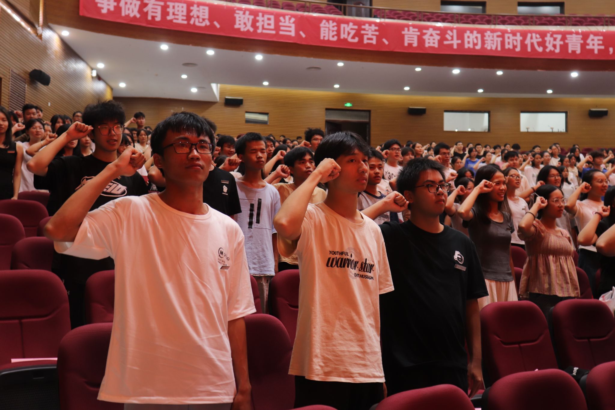 在武鸣校区音舞楼报告厅举行2024年新生开学典礼暨开学第一课,学院党委陈兵书记、汪德荣院长、黄宇副书记、刘新全副院长、蔡宏果副院长、各系主任、办公室主任、团委书记、辅导员、24级各班班主任以及全体新生参加了开学典礼。此次开学典礼由红蜻蜓艺术团主持组彭俞铭主持。