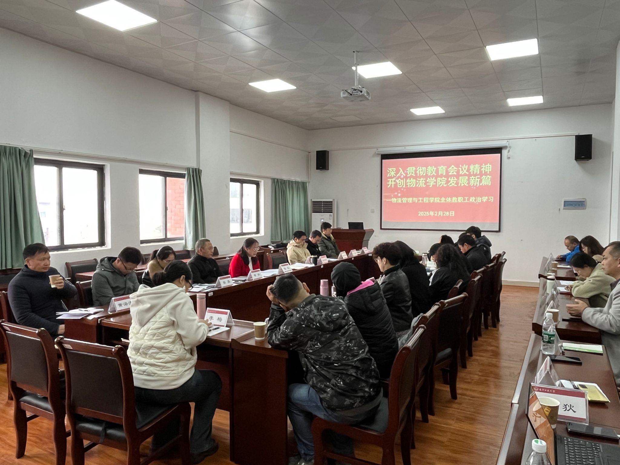 本次学习会以“深入贯彻教育会议精神,开创物流学院发展新篇”为主题,全面系统地学习了2025年全国教育工作会议精神以及广西教育工作大会的部署要求。陈书记在会上强调,这两场会议对学院的工作具有极为重要的指导意义,并结合学院实际,从人才培养、学科建设、师资队伍建设、社会服务与国际交流等多个方面,对新学期的重点任务进行了部署。陈书记要求全体教职员工要深入学习贯彻全国教育工作会议与广西教育工作大会精神,将会议精神转化为实际行动,勇于创新,敢于担当,为学院的发展、为教育强区和教育强国建设贡献自己的力量。