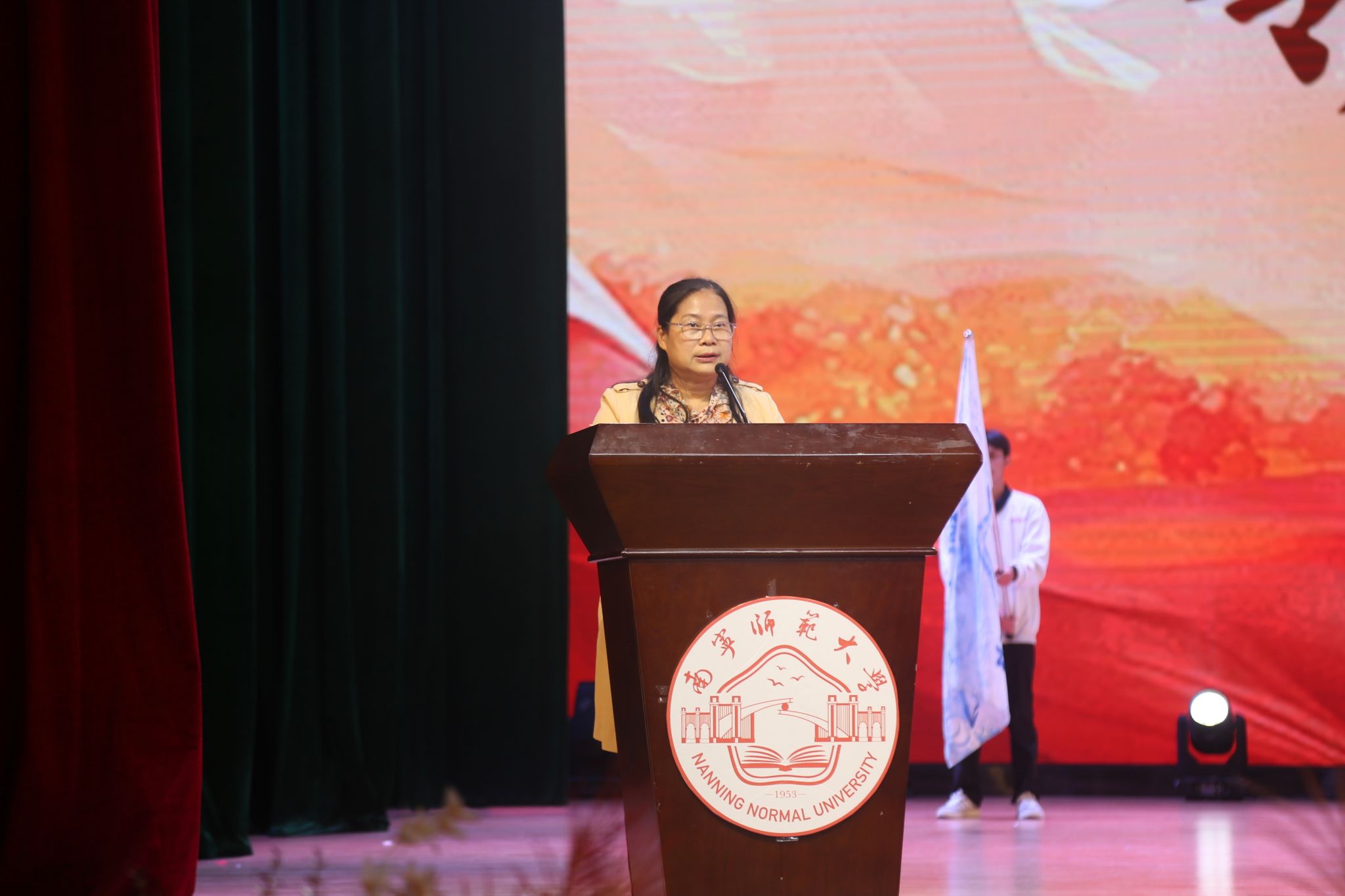 “物载初心育梦想,流汇青春写新篇”2025年班级风采展示暨新生才艺大赛在武鸣校区音乐与舞蹈学院演播厅精彩上演。学院党委书记陈兵、院长汪德荣、党委副书记黄宇、院长助理李梅等领导老师及2025级全体新生班主任莅临现场,与各兄弟学院学生代表、男同视频
