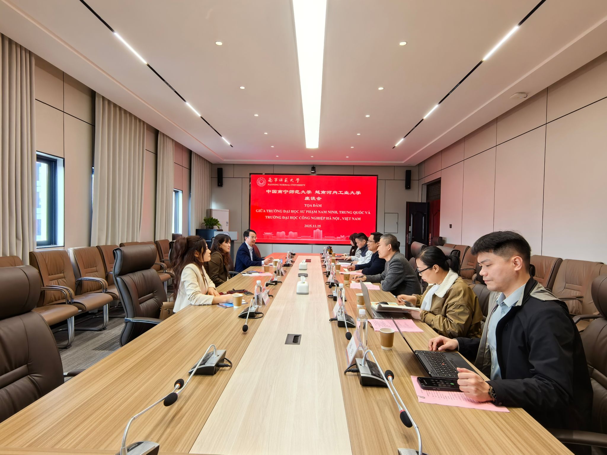 会谈双方分别介绍了各自学校及学院的办学历史、学科特色、人才培养情况,及近年来在国际合作方面取得的成果。双方重点围绕“2+2”“3+1”联合培养模式、师生互访交流、参与国际学科竞赛等事宜开展深入探讨,形成诸多共识。双方一致认为,此次会面有效增进了两校间的相互了解,深化了友好关系,为今后拓展多层次、宽领域的合作奠定了坚实基础。