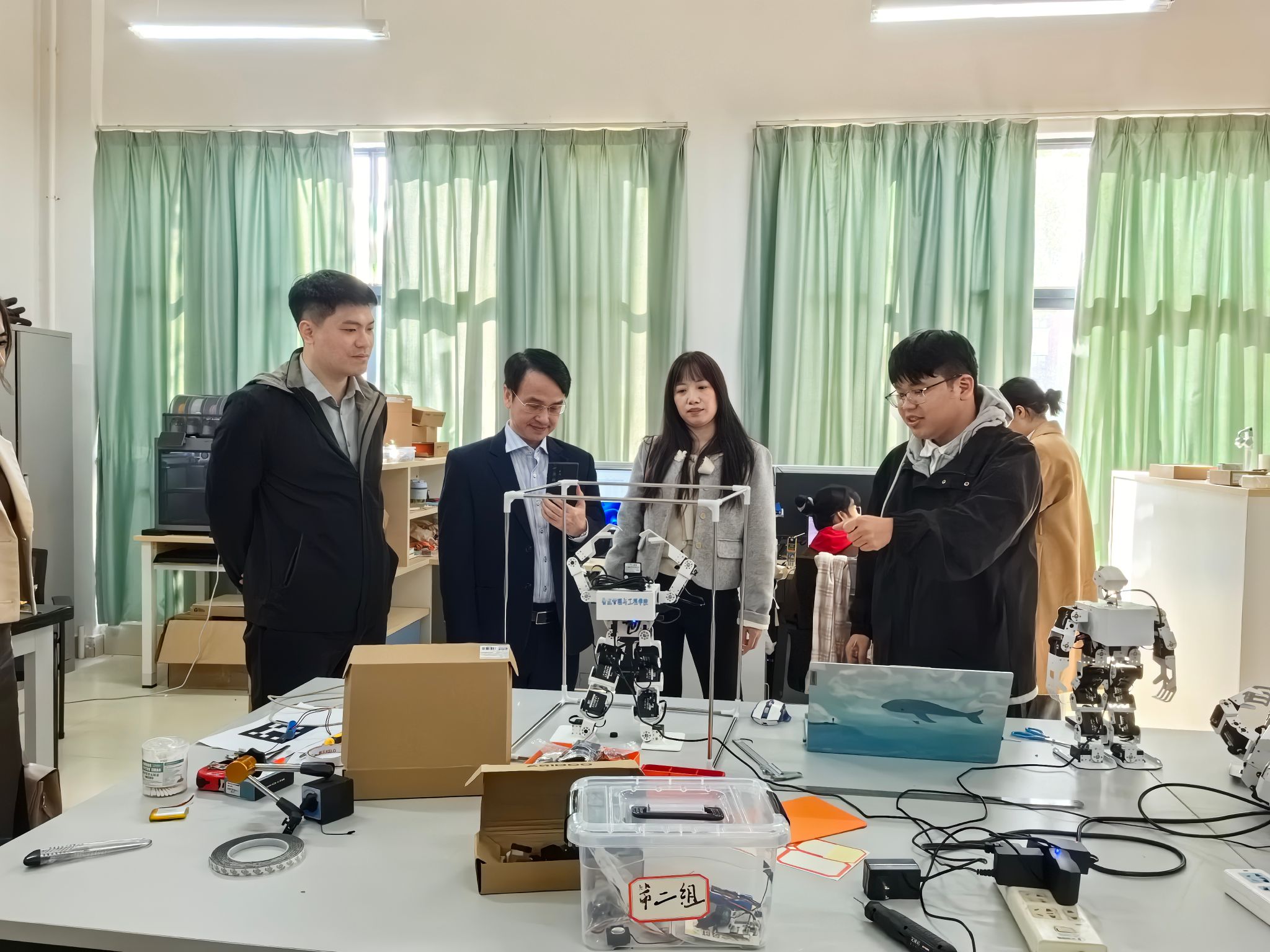 会谈结束后,代表团一行实地参观了智慧物流技术广西高校工程研究中心,详细了解了学院在智慧物流语料库等平台建设方面的进展与成效。
