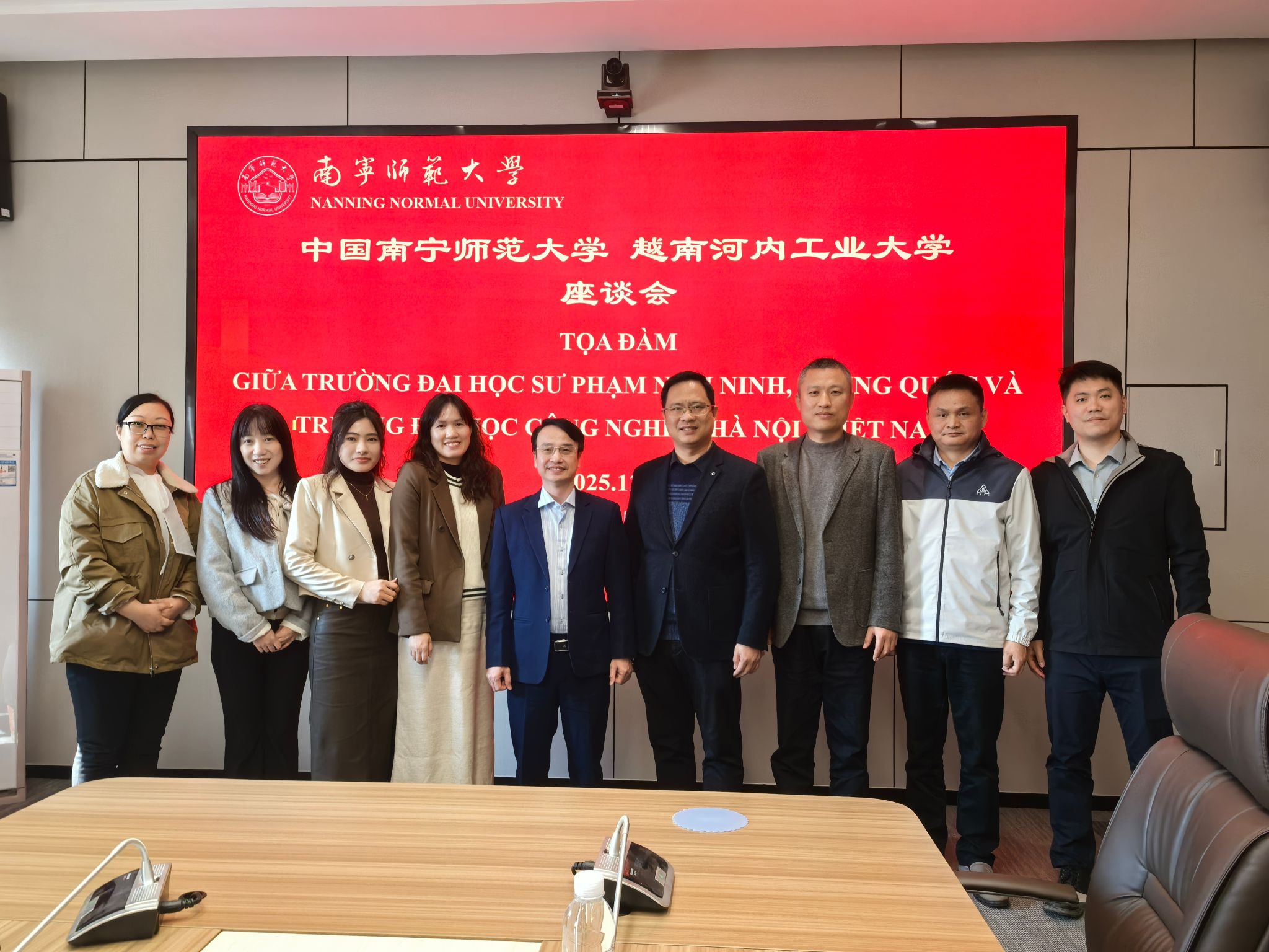 副院长刘新全、蔡宏果,院长助理李梅及相关教师,在武鸣校区地化楼C413室热情接待了代表团。