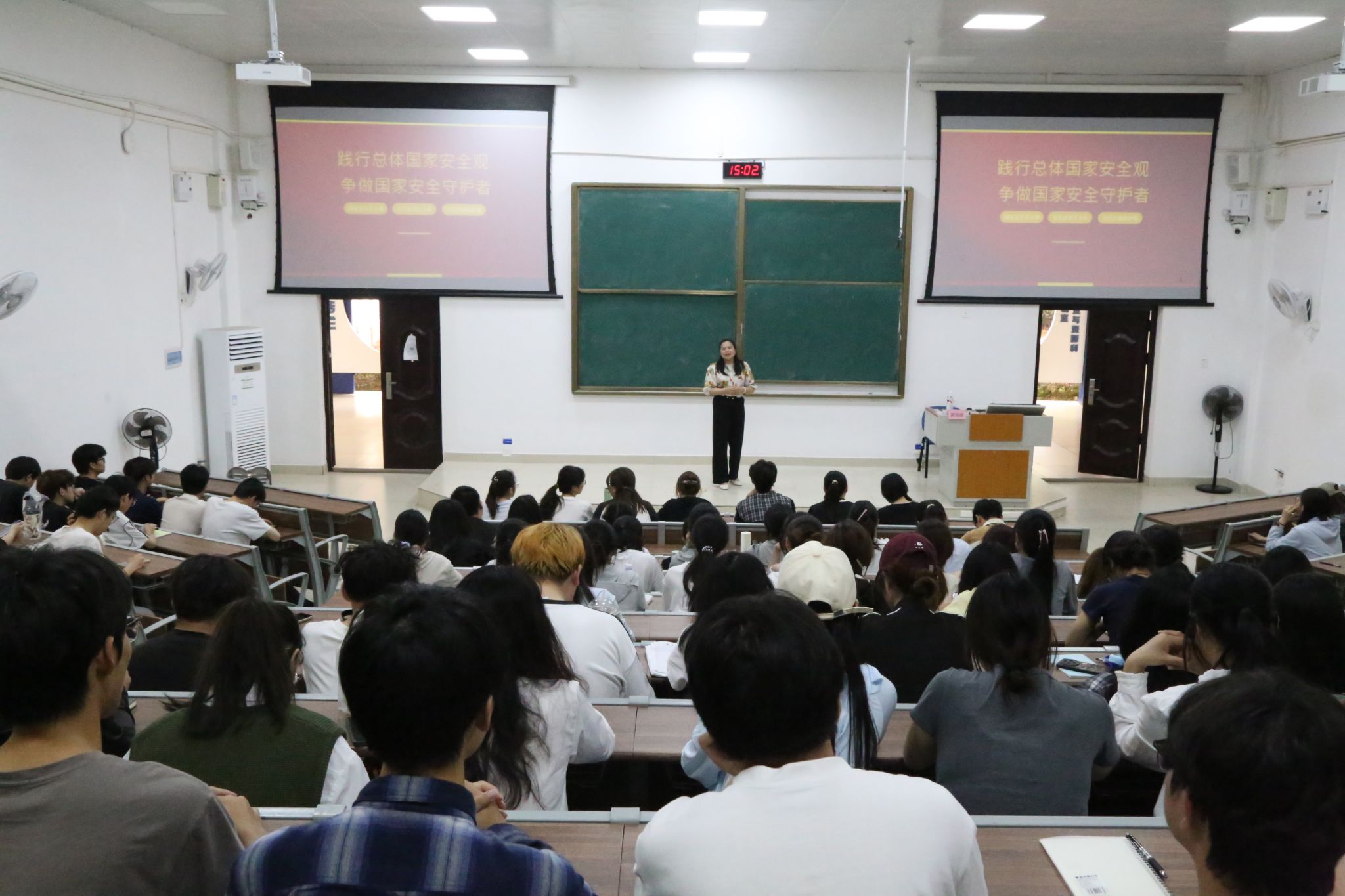 活动中,黄海嫚围绕总体国家安全观核心要义,结合当前安全形势与青年成长实际,系统讲解了政治安全、网络安全、数据安全等重点内容,推动国家安全知识入脑入心。她强调,维护国家安全是每名青年的责任与义务,同学们要主动学习国家安全相关法律法规,筑牢思想防线;要规范网络言行,不信谣、不传谣,自觉抵制危害国家安全的信息与行为;要严守保密纪律,增强风险防范意识,以点滴行动守护国家安全。