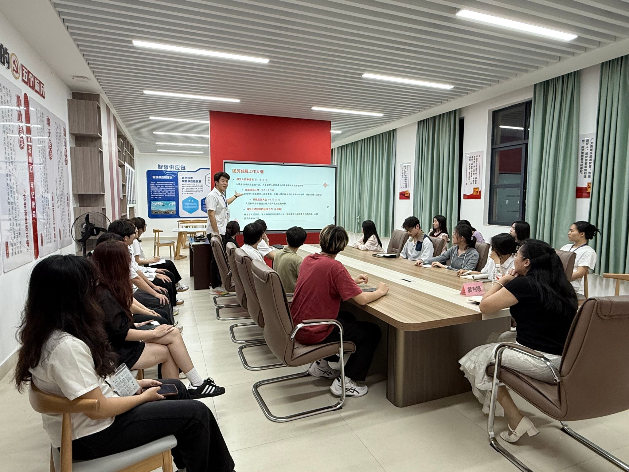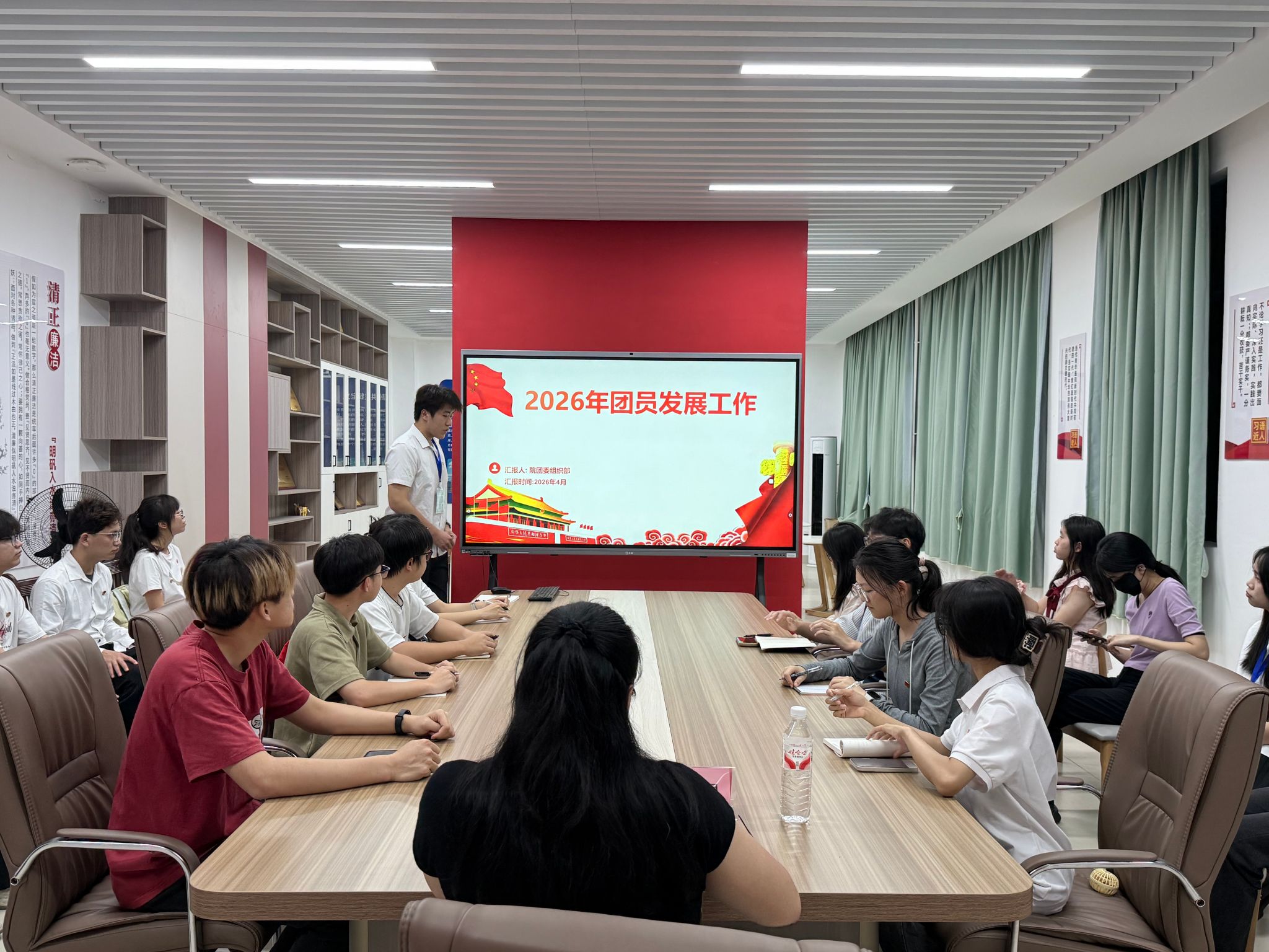 会上,沈奕兴详细阐述了团员发展工作,说明了2026年度新团员吸纳的具体方向,再次强调了发展流程及支部大会召开规则,并逐一解答了团支书的疑问,为2026年度团员发展工作明确了清晰、具体的流程与标准。随后,黄海嫚老师进行补充说明,并对新学年党团活动进行了布置,为各团支部后续工作提供了指导。