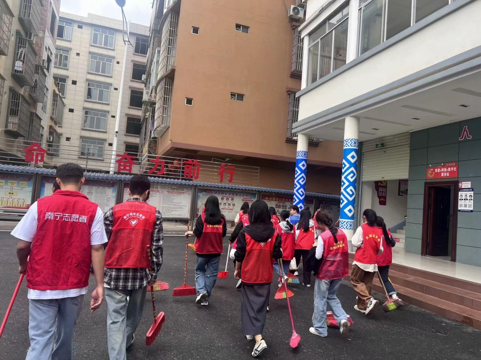 同学们们对社区街道卫生垃圾死角、绿化带等进行了集中清理,使用扫帚等工具将把埋在树叶下、藏在泥土中的纸张、塑料瓶、食品包装、烟蒂扫进簸箕。