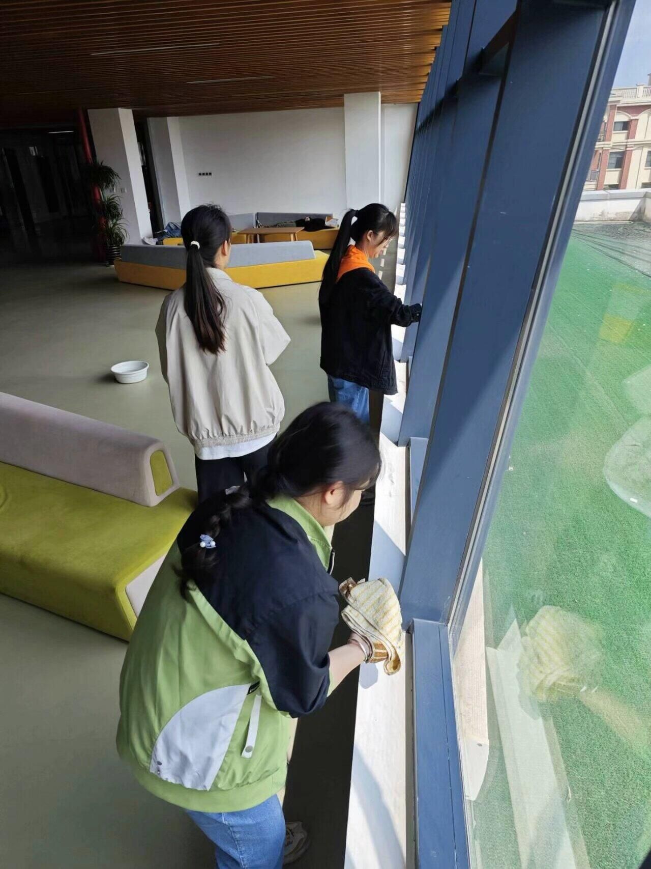 同学们分成两组分别在图书馆5楼和7楼进行清扫工作,劳动过程中,全体同学热情高涨、有序分工、协同合作,大家不怕脏不怕累,纷纷拿起扫帚、抹布等工具,对图书馆5楼和7楼,从墙面、玻璃门窗、书架到地面卫生进行了逐一擦洗、彻底清扫,确保无积存灰尘和卫生死角,还认真整理了书籍。活动结束后,大家纷纷表示,今后要继续开展学雷锋活动,尽自己的力量为广大同学们服务。