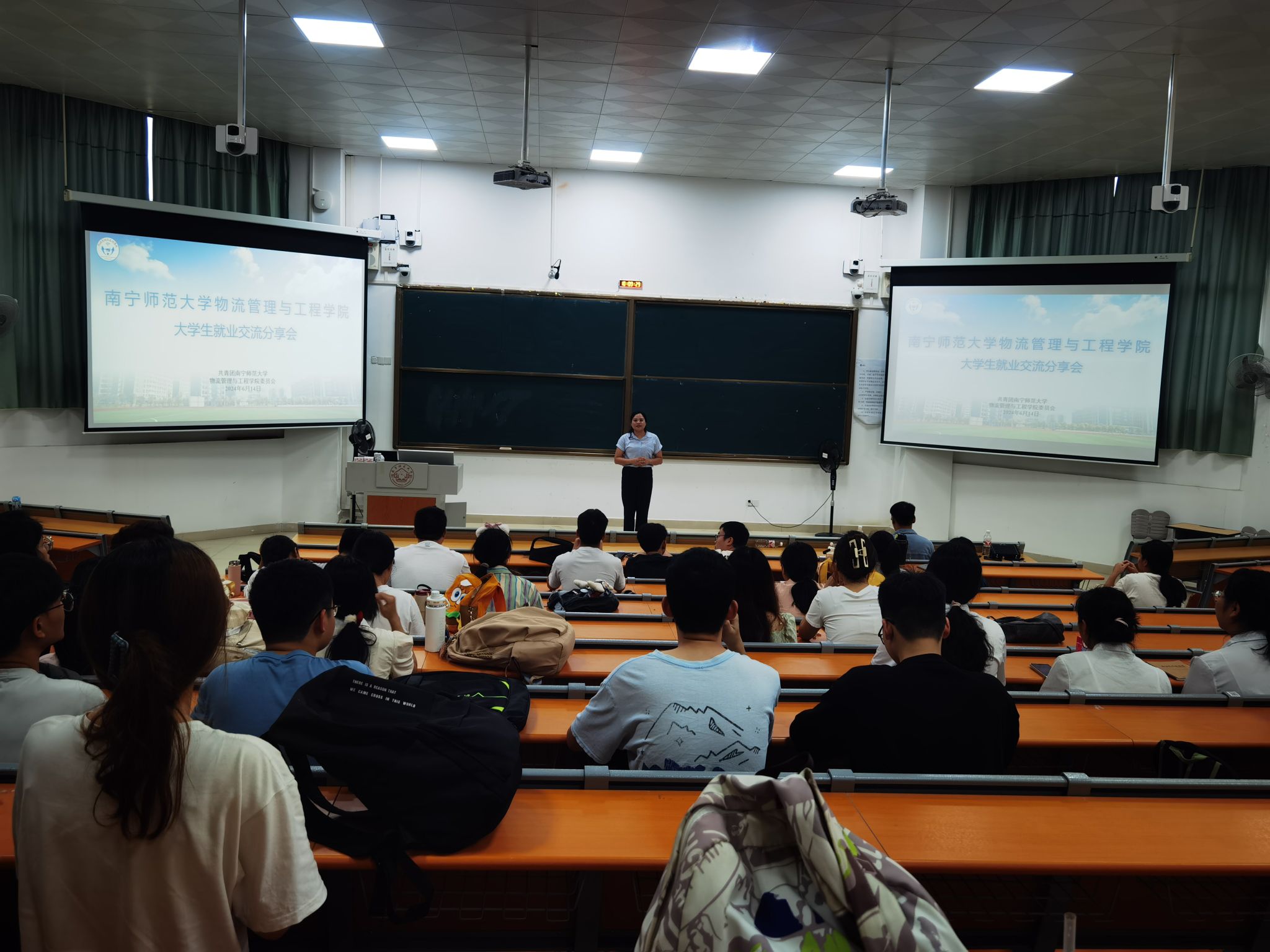 团委于6月14日上午在武鸣校区武2-221教室开展大学生就业交流分享会。会议邀请了2020级物流管理专业毕业生代表邓宝艺、林东仪做就业分享,2021级物流管理1班、2班全体同学参加了分享会,会议由学院团委书记黄海嫚主持。