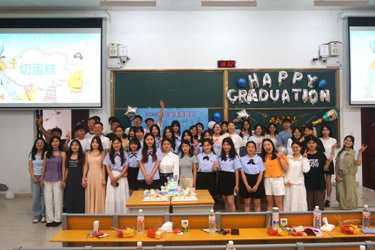 晚会尾声,师生共切“毕业快乐,扬帆起航”主题纪念蛋糕,并合影留念。